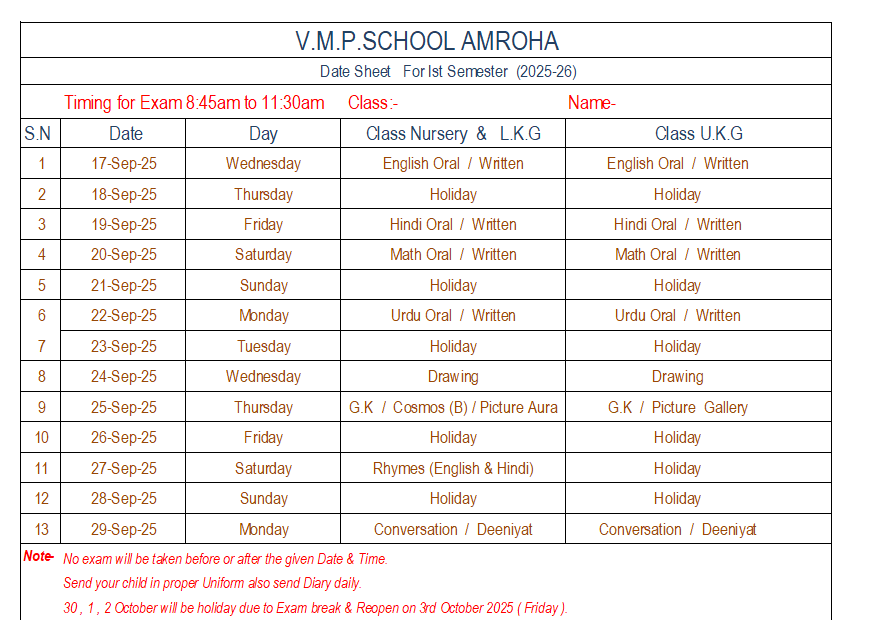 Date-sheet Half Yearly(2025-26)